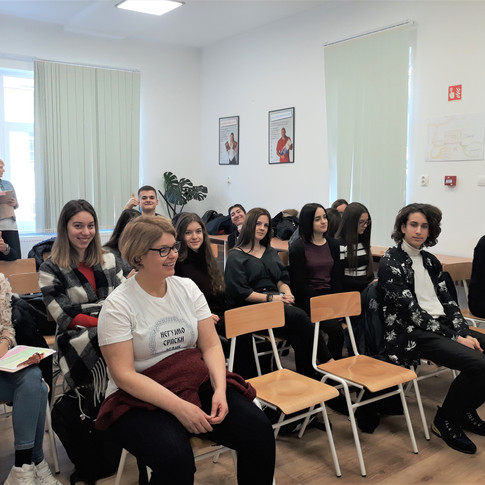 На самом почетку сусрета окупљенима, а међу њима и присутним професорима Изабели Данко, Ерики Котхенц, Катарини Басарић и Драгомиру Дујмову, у кабинету за српски језик и књижевност обратила се професорка Кристина Бекић. Из њене беседе издвајамо следећи део: „Данас у свету постоји око седам хиљада језика. Свакоме је неки језик матерњи. Матерњи језик је део културног идентитета једног народа, тачка препознавања, различитости, али и толеранције и разумевања. То је језик који људи најпре науче. Њега усвајамо природно, у средини у којој одрастамо. Матерњи језик је наслеђе које припада сваком појединцу и нико нема право одузети то наслеђе никоме. Исто тако, љубав према матерњем језику не сме нас спречити у томе да учимо стране језике.